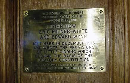 Plaque at Little Gidding commemorating the Writing of the Oratory Rule by the Father Founders
